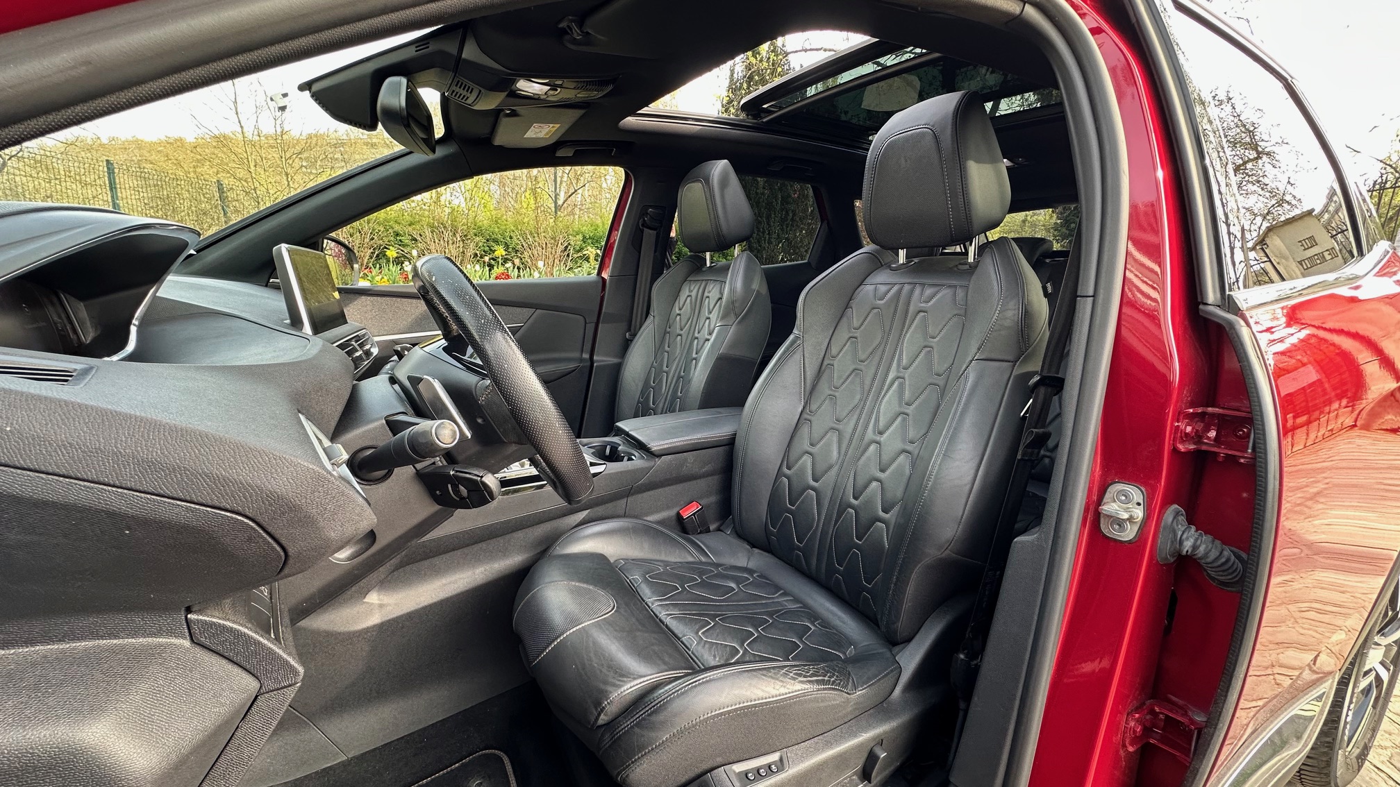 OPTIONS ET ÉQUIPEMENTS : Audio – Télécommunications : – 6 haut parleurs – Fonction mirror screen – Radio – Radio dab – Système hi fi premium focal – Bluetooth – Prise audio usb – auto-radio commandé au volant – ecran tactile Conduite : – Accès et démarrage mains libres – Follow me home – Stop & Start – affichage tête haute – allumage automatique des feux – détecteur de pluie – limiteur de vitesse – régulateur de vitesse Extérieur : – Ceinture de vitrage chromée – Hayon mains libres – Pack attelage – Pack city 1 – Projecteurs peugeot full led technology – Rétroviseurs électriques – Sortie d’échappement chromée – Vitres latérales arrière et lunette arrière surteintées – essuie-glace arrière – jantes : aluminium – radar arrière de détection d’obstacles – radar d’aide au stationnement – rétroviseurs dégivrants – rétroviseurs rabattables – rétroviseurs électriques – toit ouvrant – toit ouvrant panoramique Intérieur : – Accoudoir central av avec rangement – Appui tête conducteur réglable hauteur – Appui tête passager réglable en hauteur – Banquette 1/3 2/3 – Boite à gant fermée – Eclairage d’ambiance – Ecran couleur – Fixations isofix aux places arrières – Inserts de porte métal – Miroir de courtoisie conducteur éclairé – Miroir de courtoisie passager éclairé – Ouverture des vitres séquentielle – Plafonnier central av et ar led – Plancher de coffre mobile – Poches d’aumonières – Porte gobelets avant – Pédalier sport – Sige conducteur avec rglage lombaire – Siège passager avec dossier repliable – Verrouillage centralisé des portes – Vitres arrières électriques – accoudoir central – accoudoir central arrière – climatisation : automatique – fermeture centralisée – intérieur : cuir – pack cuir – prise 12V – réglages du volant : profondeur – rétroviseur interieur electrochrome – sieges reglables en hauteur – siège conducteur réglable en hauteur – trappe à ski – verrouillage automatique des portes en roulant – verrouillage à distance – vitres avant éléctriques – volant cuir Pack : – Pack safety plus – Sabot de pare choc avant gris mtallis – Toggle switches chroms – Toit black diamond noir perla nera – EQUIPEMENTS => Navigation connectée 3d sos et assistance téléservices – anti démarrage – nombre de rapports : 8 vitesses – siège passager réglable – volant multifonctions – volant réglable – Écran multifonction Sécurité : – Appuis tête avant actifs – Ceintures avant ajustables en hauteur – Dtecteur de sous gonflage indirect – Reconnaissance panneaux de signalisation – ABS – Aide au demarrage en pente – Airbags rideaux – Airbags rideaux arrière – ESP – aide au freinage d’urgence – airbag conducteur – airbag coté passager – airbags latéraux – fixations ISOFIX – répartiteur électronique de freinage – troisième ceinture de sécurité Autres équipements et informations : – I cockpit amplify – Rouge ultimate (s) – Rétroviseurs extérieurs rabattables électriquement avec ‘lion spotlight’ (projection du lion peugeot au sol) – Classe Crit’air : 1 – MP3 – Puissance kilowatt : 133 kw – USB – puissance réelle : 181 ch – vide poche porte avant – émission CO2 : 128 g/km